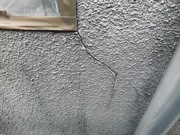 手順は洗浄のあと親方が窓周り、見切り部の足場かけ養生。私は外壁クラック部のカッター、トップライト廻りシーリング処理を終え、養生が終わった部分から下地調整のシーラー塗り。たっぷりとの指示の下、体に浴びながらの作業、養生を終えた親方もシーラー塗り。一連の動作がゆったりと経験を感じます。