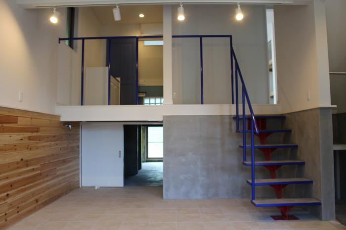 3mを超える斜め天井は小屋裏まで吹き抜かせ、トップライトを設置している。