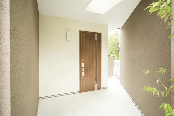 トップライトからの明るい光が差し込む、玄関ポーチ。