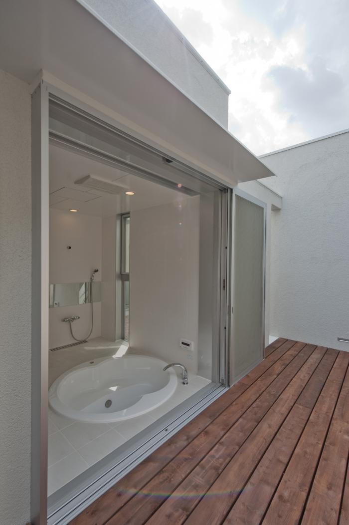 プライベートテラスに面し、窓を全開放できるバスルーム