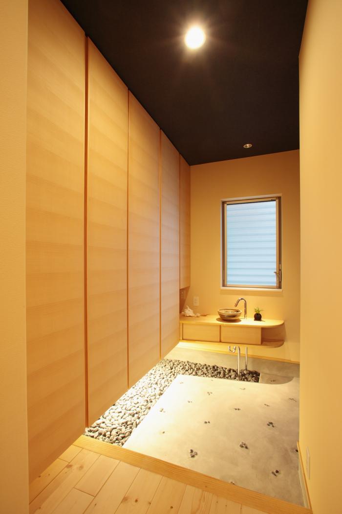 土間風の玄関や無垢材をふんだんに使った内装で、見た目にも触覚的にもリラックス出来る空間になるように心がけて設計をしました。