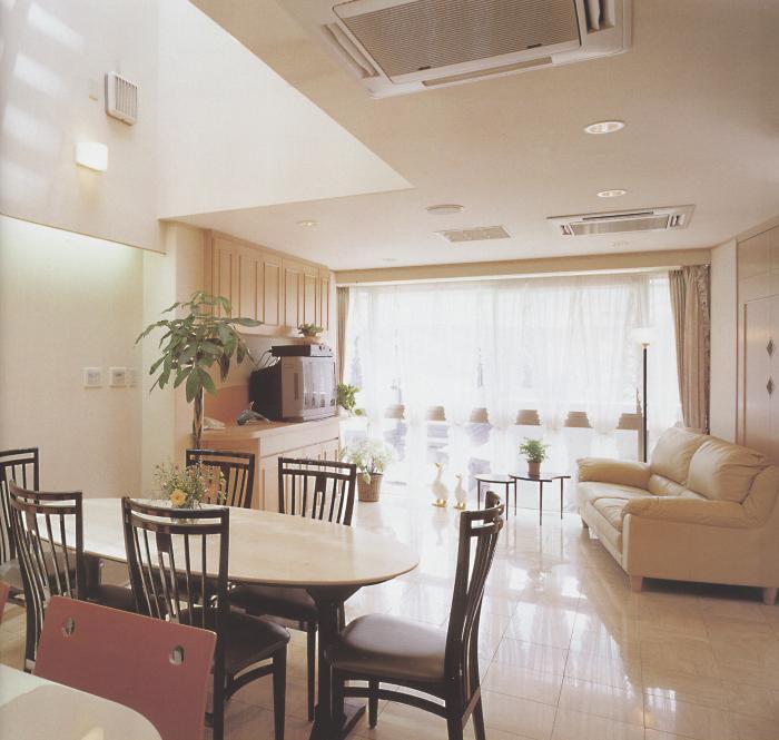 吹抜け上部のガラス屋根から、室内に光が降り注ぎます。