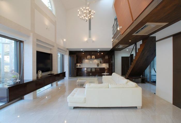 和風の主家の隣に、各スペースが「高級感と気品ある、ゆとりの空間」となる洋風の住宅を施主が要望しました。