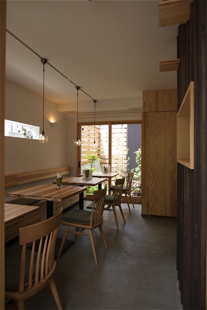 店舗の内観。奥に坪庭をつくり、内部に外部を取り込む構成にした。