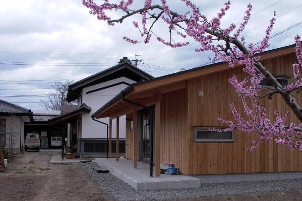 故郷へ帰って農業をはじめた夫婦のための17坪の小さな家。両親の住む母屋と、はす向かいにして適当な距離感を生み出しています。建て主と私達の設計作業は、暮らすことの原点を見つめて、この住まいに必要な形を与えることでした。形を見出すまで時間がかかったけれど、おおらかで素朴な佇まいの小屋になりました。
