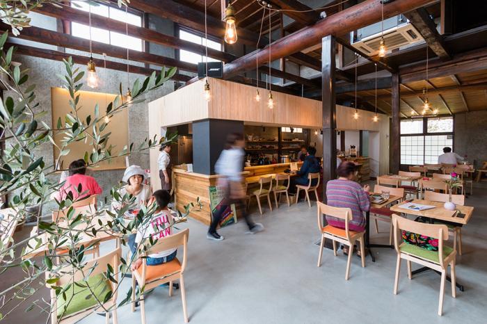 ここでは、関わる全ての人が地域資源の価値を再考するために「資源の再配置化」をコンセプトにしており、建築家は、段階的に地元の小中学生や大人と意見交換を繰り返しながら、施工業者と一緒になって住民にも実行できる建設プロセスを構築しています。ここで出た廃材の利用方法や施設の将来像や新しい活用方法の提案→実行に関わることができる「地域接続型」の再築計画が実践されています。この施設は、産直販売や情報展示など様々な用途で活用できるような「まちの玄関」と、地元農家で育った野菜や果実をその場で調理できる「まちのレストラン」となる調理エリアからなり、2階の床をほとんど撤去することで2階窓からの暖かな自然光を取り込み、さらに既存躯体の中に挿入した厨房ボックスは、新しさと古さを融合させるためあえて新しい無垢材で包むことで、利用していただく全ての世代の人に懐かしく、居心地の良い空気が緩やかに循環する開放的な地域交流空間を創出しています。今後、第3期として2階の一部を民泊に改修し新しいステージへ進む予定です。