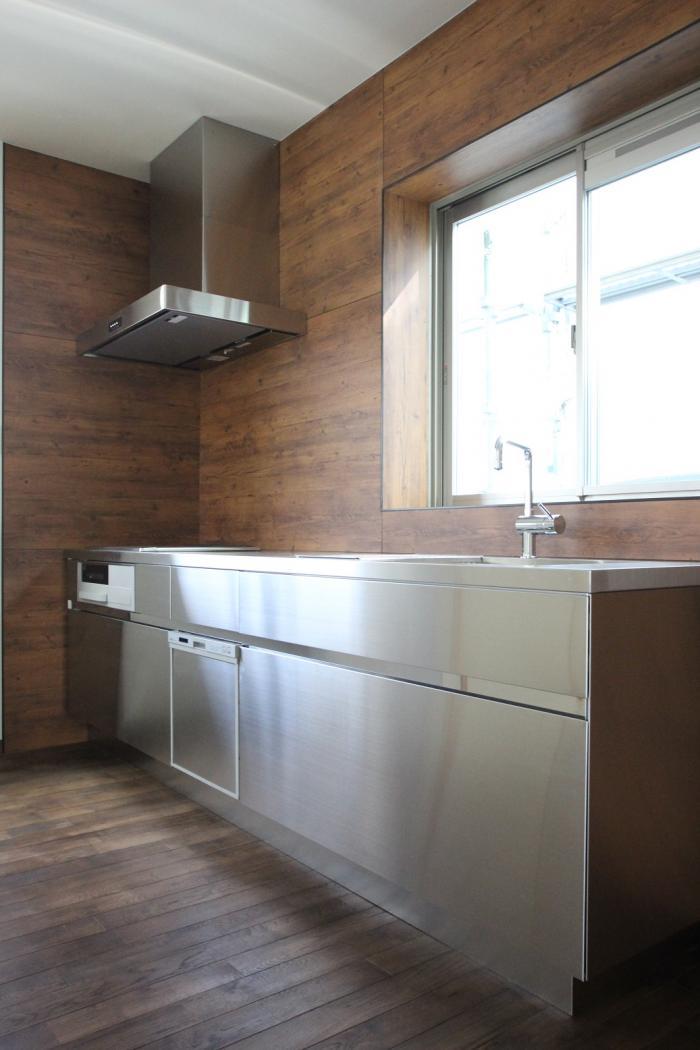 システムキッチンは、サンワカンパニーの「グラッド」というステンレス製のもの。
