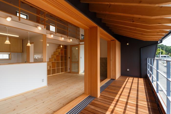2階は建物の中央部分にLDKを据え、デッキテラスと合わせ、西日に配慮しながら生駒山を楽しめる空間として
