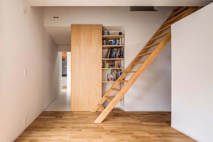 同時に猫目線で考えると、フロアレベルとは別に家具や梁の上を伝って天井レベルで回遊できる動線となっており、平屋でありながら2層の回遊動線をもつ住宅となっています。
