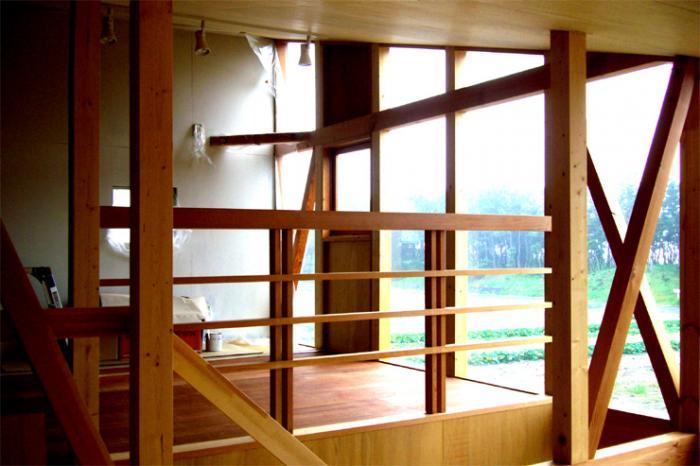階段の段板も構造材です。それでも様々な樹種が混在して大変にユニークな空間を作り出しています。