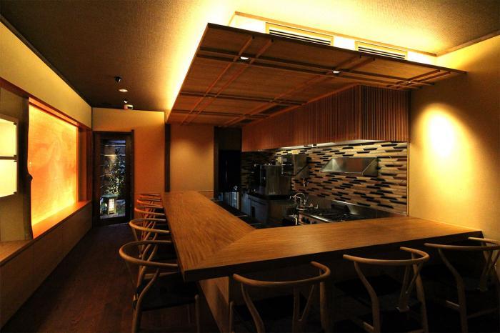 大人向けの落ち着いた、隠れ家的な上質空間を希望。プロ仕様のキッチンでお客様との会話が楽しめるライブ感も重要視されておりました。