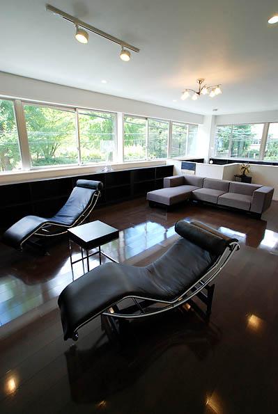 鉄骨造2階建の事務所ビルを専用住宅にリノベーションした住宅です。構造体と外郭・屋根はそのままに、内部を全てがらんどうにした上で住宅に作り替えました。