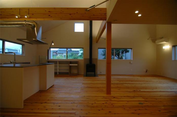 敷地東側の広がりを借景として取り込んでいます。薪ストーブは旦那さんのこだわりの一品。とても快適だそうです。