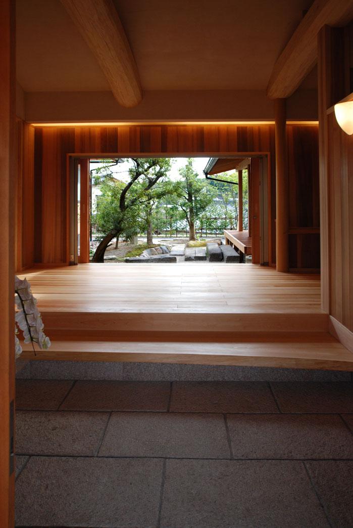 コーナー和室から見たLDK。大開口の窓から見える中庭。