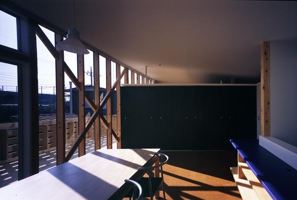 2階ダイニングから子供室方向を見た内観。木造の軸組をそのまま現しとした。