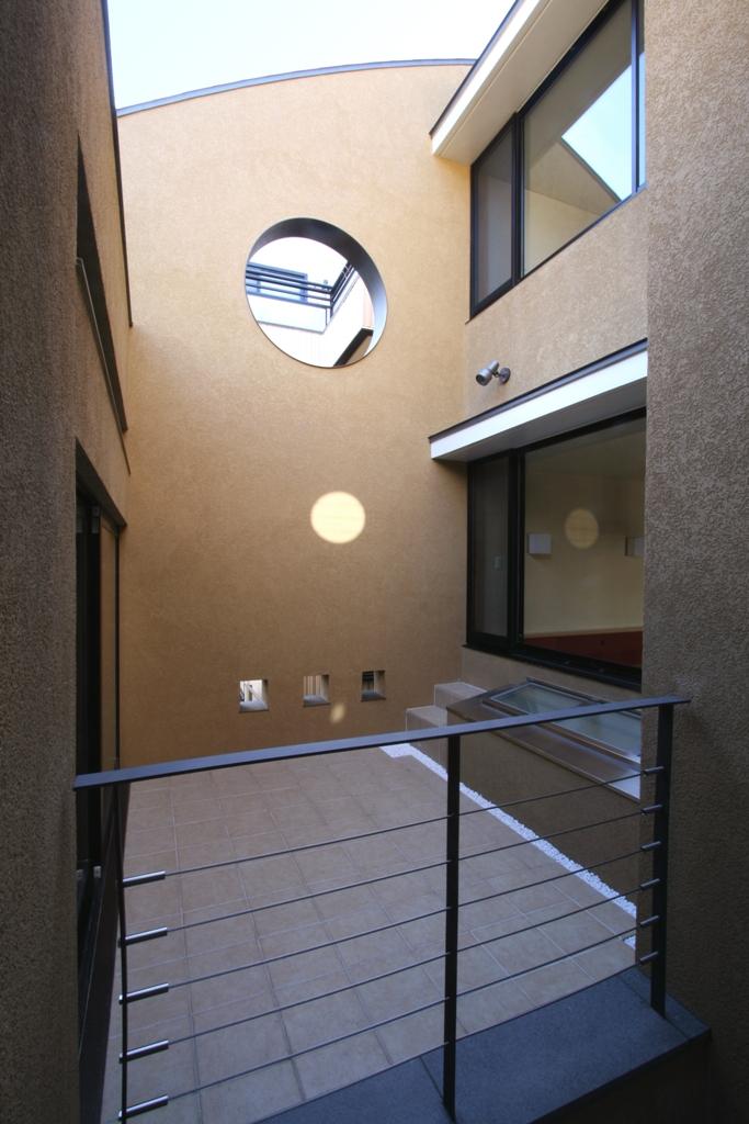 手前は中庭の一部を1階の光庭につながる吹き抜けとした部分です。