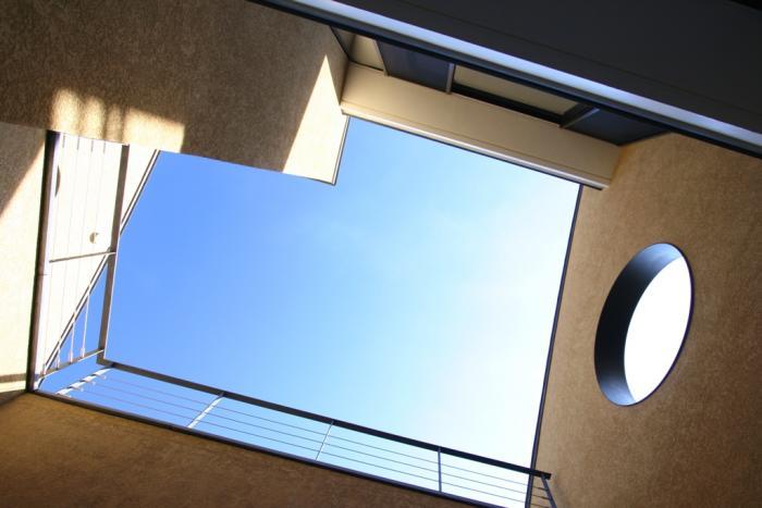 小さな吹き抜けではありますが、上階の洗面脱衣室や浴室とつながる吹き抜けでもあります。