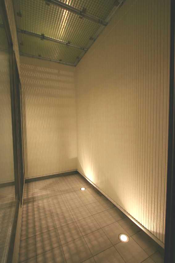 また、2階の光庭には、FRPグレーチングを敷き、光や風を通しながら、外に出られるようにし、夜間は埋め込みのアッパーライトや、スポットライトによりライトアップされ、光庭を明るく照らし出すようにしました。