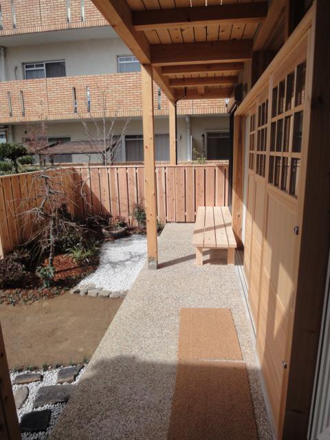 小さな縁側とここだけ和風のお庭。