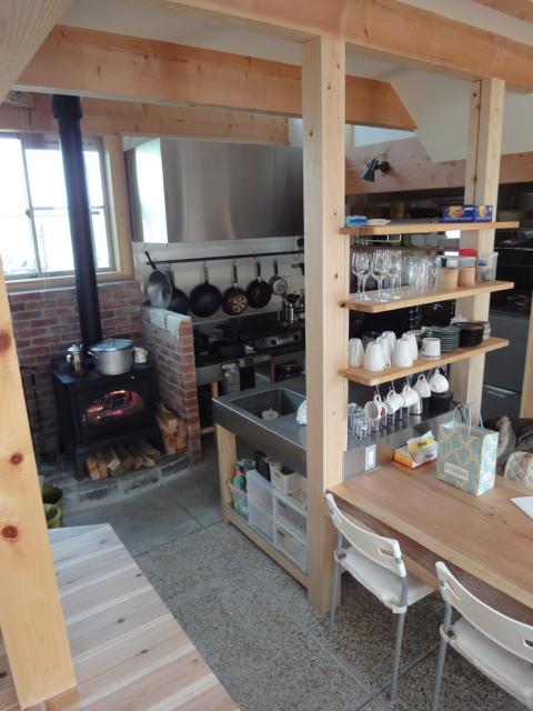 離れという事で玄関はなく、入口の大きな開口を入るとすぐに土間キッチンのため寒さ対策は必須でした。