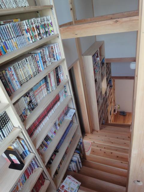 本が沢山あるので階段の壁一面を本棚にする事、母屋では手狭になった息子さんの部屋を2階に設ける事。