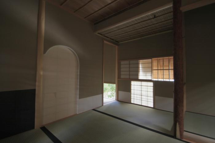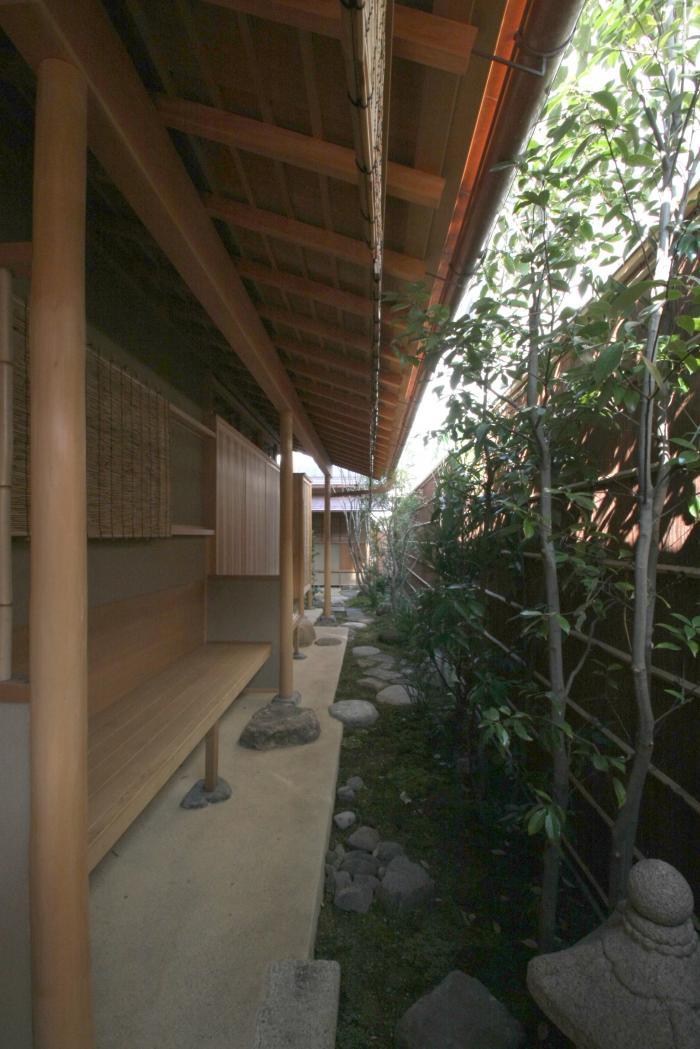 狭い敷地にどのように、2階を住居とし、広間と小間、路地、玄関、寄り付きを配置するか、鎌倉といえどもハウスメーカーの建物が建ち並ぶ環境にあって、どのように茶の別世界を構築するかに大変苦労した。