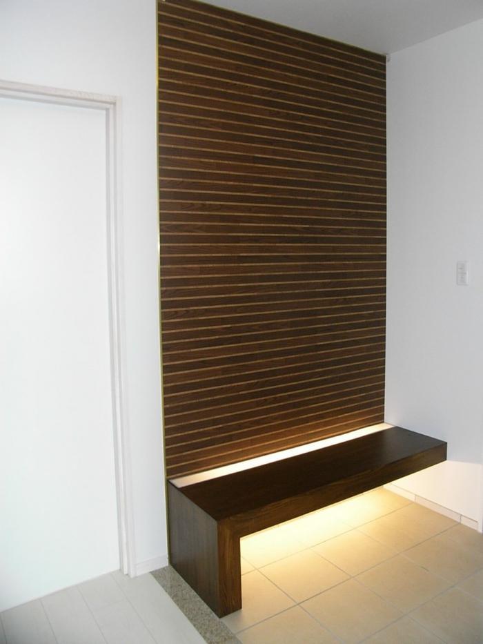 住宅玄関脇の足元照明を仕込んだベンチ