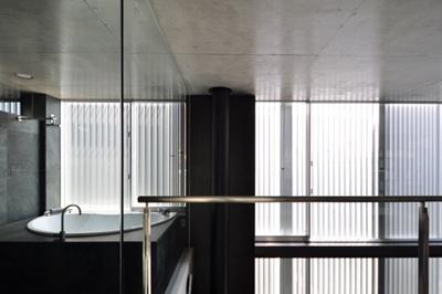 地下から屋上までつながるガラスの階段は、刻々と移動する太陽