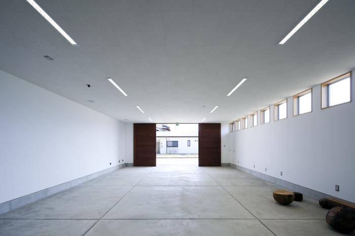 木彫の制作過程において発生する音を遮断するため、アトリエと住宅を中庭を設けることによって分離し、緩衝帯としての役割と、木彫作品の発表の場、家族や友人が集まることができるコートハウスとして提案。