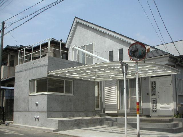 コンクリートの音楽スタジオ増築…ガレージに浮いた屋根~川越の家 http://www.geocities.jp/ohkokk/kawagoe.html