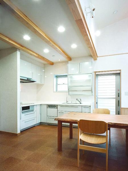 段差をなくし、床下暖房で温度差をなくし寝室からサニタリーに直行できるプランになっており、老後も快適に過ごせるバリアフリー仕様です。南側バス通りの視線と音をさえぎりながらも、光と緑をふんだんに取り込みました。
