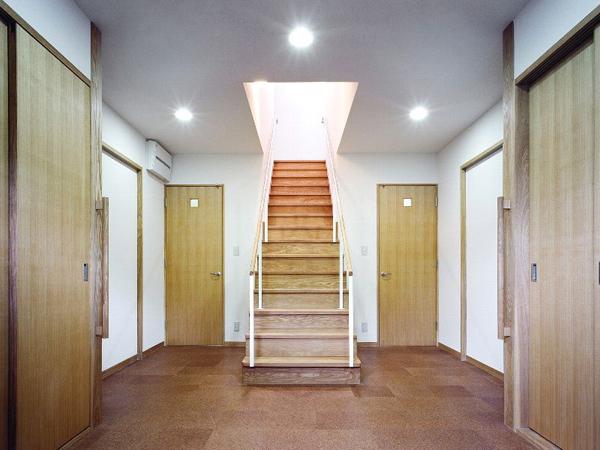 玄関と階段を共有した、縦割り型の2世帯住宅です。