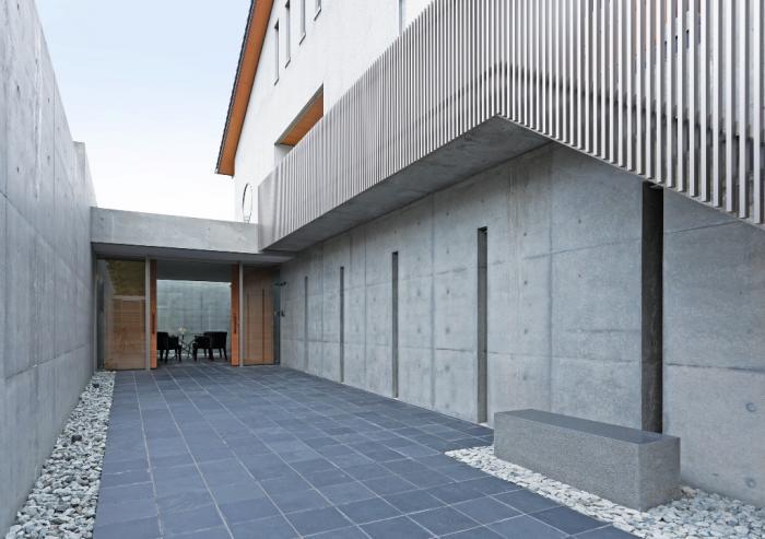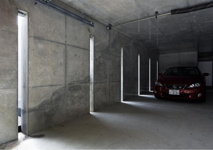 RC造のガレージの上は枯山水の庭と光が射し込む中庭とした