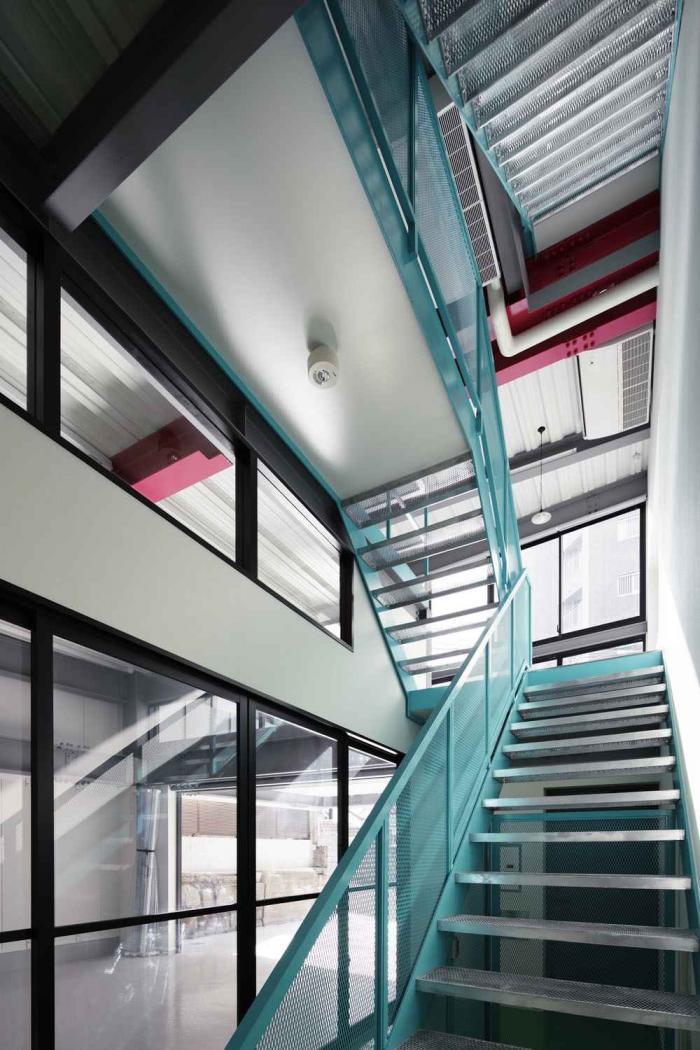 クライアントの社長はデザインがお好きで、何度も打合せを重ね、外観は鉄骨を露出させたイメージとし、内観は所々にアクセントカラーを用いました。
