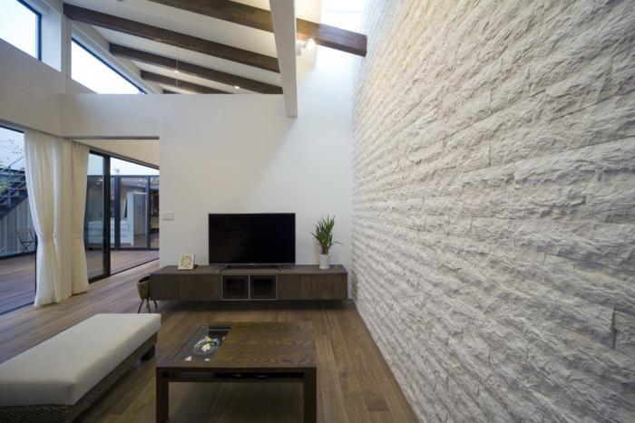 内部空間のありようと南面はプライバシーが難しいので窓は極力取らないご希望を逆にデザインコンセプトに