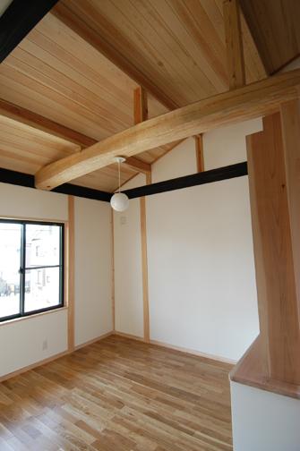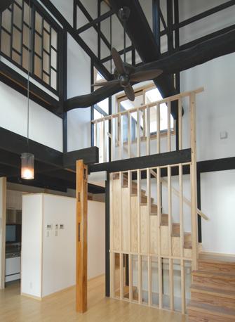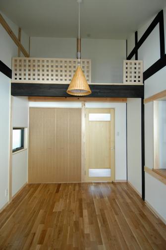 新築住宅ですが、内部は古材を用いて木材の味を活かした空間となっています。1、2階で延床32坪の住宅ですが、内部空間は広々とした開放感が感じられます。地下室があり、プラスワンとしてのゆとりが感じられます。