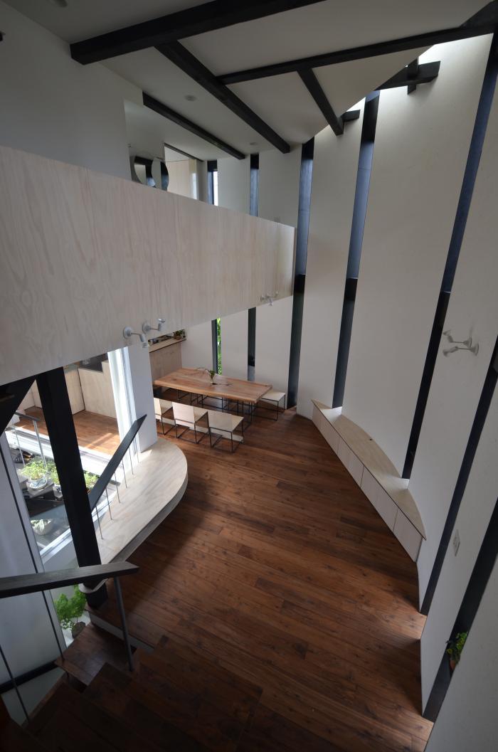 パブリックな通りとつながる中庭とプライベートな居住エリアは様々な開口部と内外の階段やテラスにより3次元でからむことで、これまでの都市型の閉鎖的なコートハウスとは異なる様々な生活シーンを紡いでいます。