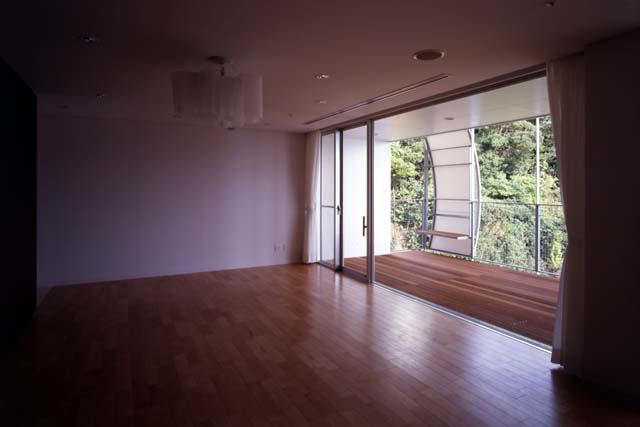 バルコニーは室内と連続させるべきであるといつも考えています。狭い部屋も広く感じられ、植物などを置けば室内にその変化が入り込み、季節のうつろいが感じられます。この写真でバルコニーと室内が連続した状態がよくわかります。