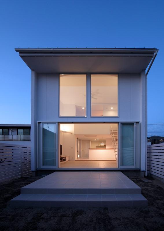 北道路からの夕景 白い箱