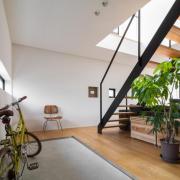 当事務所(住宅兼用事務所)です。住居として使用すると共に事務所としても案内出来る様、家具レイアウトを配置しています。風の流れ、光の動き、吹抜・開口部の開放感を感じるゆったりとした空気感のある設計となっています。