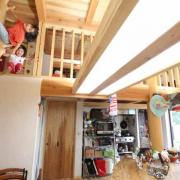 3世代4人家族が住む、延床面積約60m2の小さな住宅。木造2階建て+ロフトの構成。大きな吹抜のある家族室を中心に左右に個室が並ぶ。吹抜はロフトの天井レベルまであり、最大高さは6mを超える気積を持つ。 |