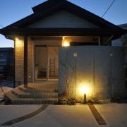 ハレの空間(来客スペース)を南、ケの空間(生活スペース)を北に配置し、玄関を挟んで明確に分けることで動線が交錯ことを無くしました。ケの空間は憩いの場としてのリビングを中心に配置し、西に個室群、東に水廻りと主寝室を配置しました。 |